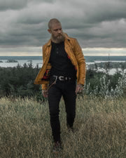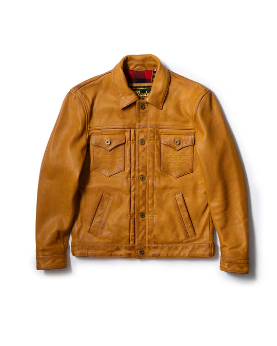 The Goldrush is a limited-edition Type II-style leather jacket crafted by Master Supply Co. in a striking saddle tan colorway. Built with premium vegetable-tanned leather, it’s designed to age beautifully, developing a rich patina over time. This jacket is a nod to the rugged heritage of the American West, blending timeless workwear design with luxurious craftsmanship.